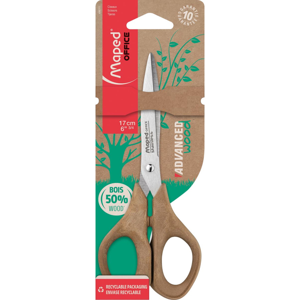 De Maped Office Advanced Wood schaar van 17 cm is ideaal voor dagelijks knipwerk op kantoor, thuis of op school. Dankzij de symmetrische ogen is deze schaar bijzonder geschikt voor rechtshandigen en biedt comfort en nauwkeurigheid bij langdurig gebruik.
