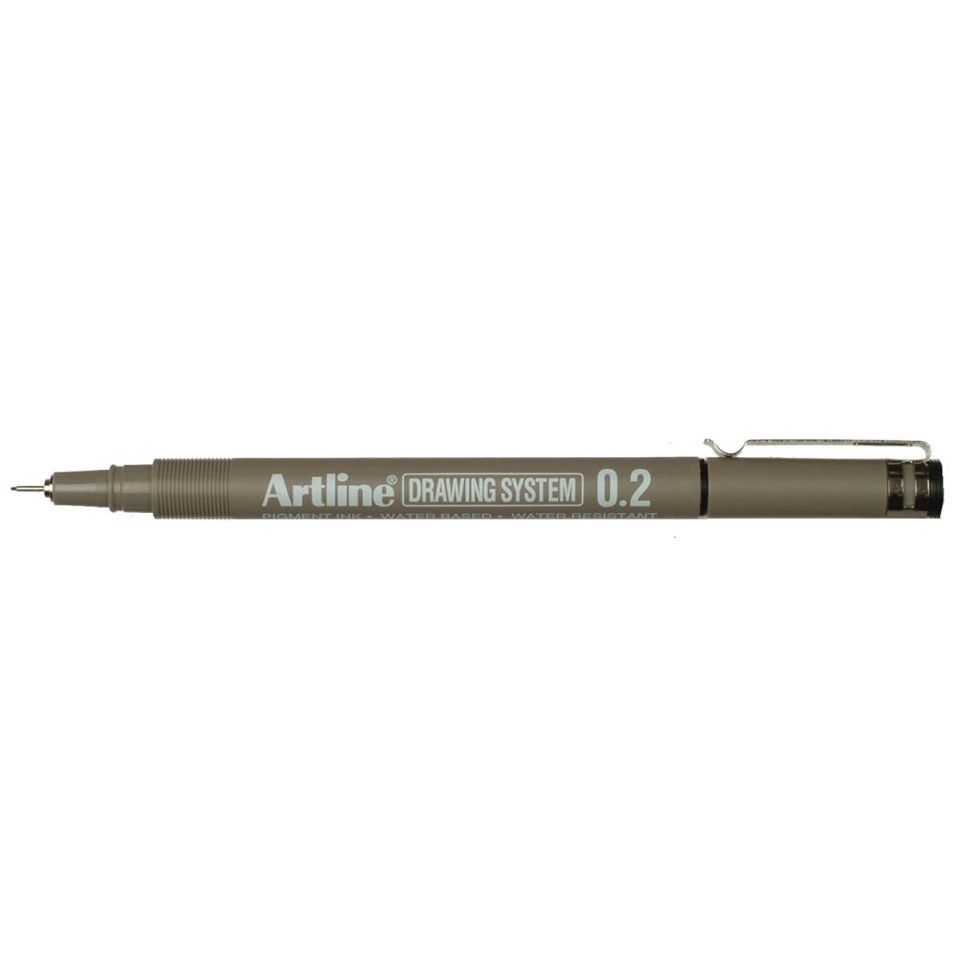De Artline Fineliner Drawing System 0,2 mm is een precisietekenpen met een uit metaal gevatte nylonpunt, ideaal voor grafische tekeningen, schetsen en illustraties. Ontwikkeld voor gebruik op school, op kantoor of voor creatief werk. Kleur: zwart.