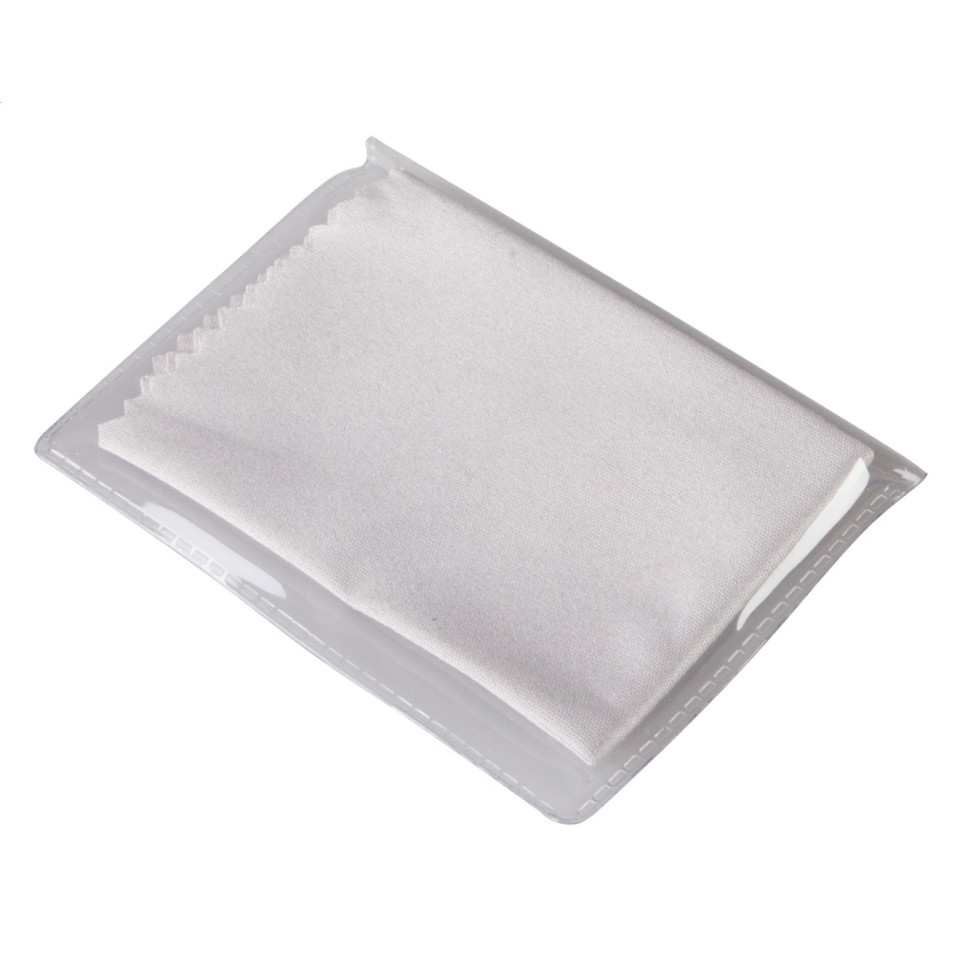 Microfiber reinigingsdoekje voor brillen, verpakt in een handige PVC-hoes. Ideaal voor het schoonmaken van brillen zonder krassen achter te laten, perfect voor dagelijks gebruik.