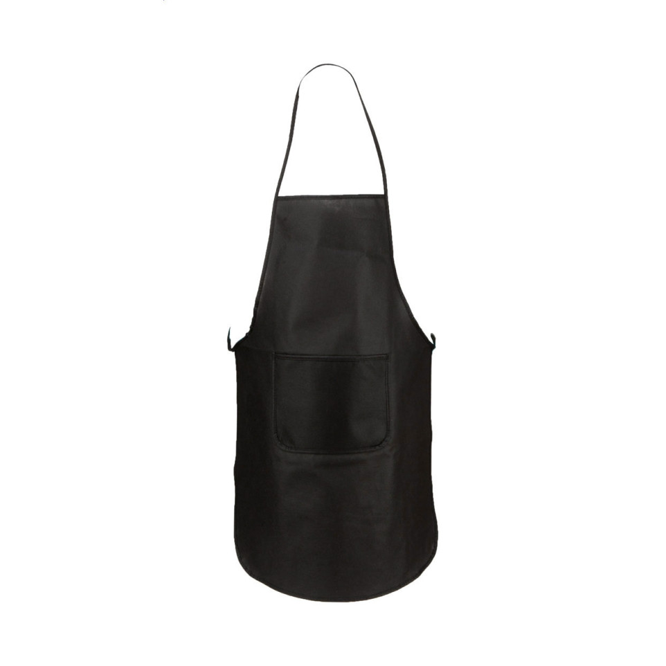Praktisch zwart schort, ideaal voor keukengebruik of horeca, voorzien van een handig voorvak om gereedschap of accessoires binnen handbereik te houden. Gemaakt voor dagelijks gebruik in uiteenlopende werk- of promoteromgevingen.