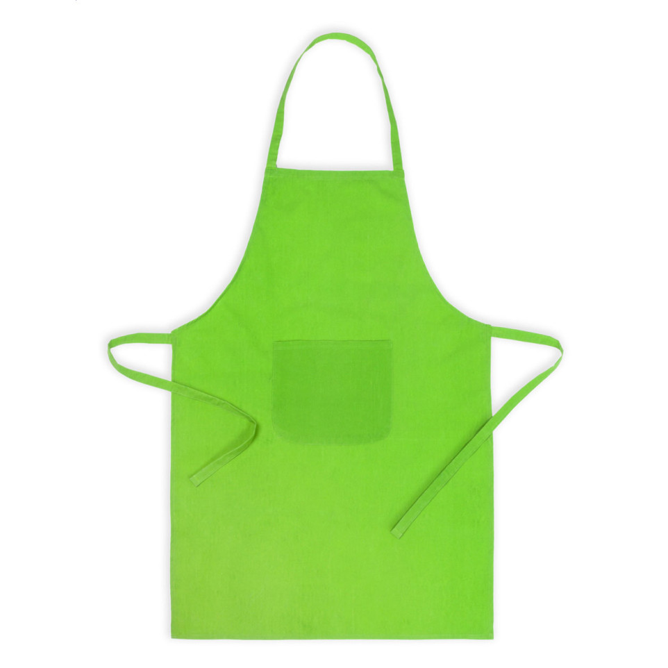 Groene schort met praktische voorzak, geschikt voor dagelijks gebruik in de keuken, horeca of voor promotionele evenementen.