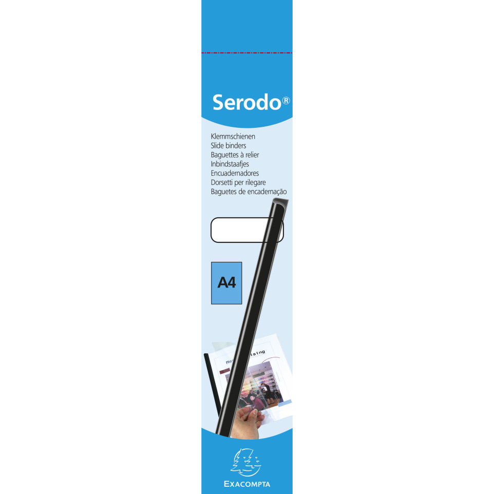 Doos 25 Serodo bindruggen 9mm capaciteit 90 bladen - A4. Serodo rugbinders voor het inbinden van documenten. Onmisbaar voor kleine ondernemingen of particulieren die over geen inbindmachine beschikken. Ze worden gebruikt met of zonder omslag of presentatieblad. Verkrijgbaar in 6 capaciteiten van 3 tot 18 mm en in maximaal 5 kleuren. De afgeronde snit aan de bovenkant van de Serodo vergemakkelijkt het invoegen van documenten in de stick die moet worden verbonden.