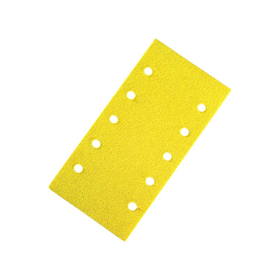 10-gaats geperforeerde zelfdichtende plaat van SIA, geschikt voor rechthoekige schuurmachines. Efficiënt voor het schuren van verschillende oppervlakken. Aanbevolen voor zowel handmatig als mechanisch gebruik bij projecten met verf en hout.