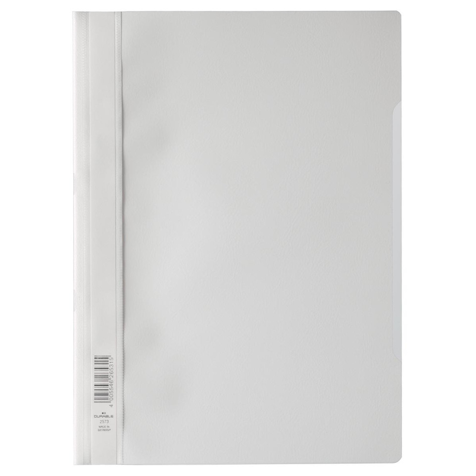 De Durable snelhechtmap wit is ideaal voor het netjes bundelen, presenteren en archiveren van A4-documenten in kantoren, scholen of thuiswerkplekken. Dankzij het transparante voorblad blijft de inhoud direct zichtbaar.