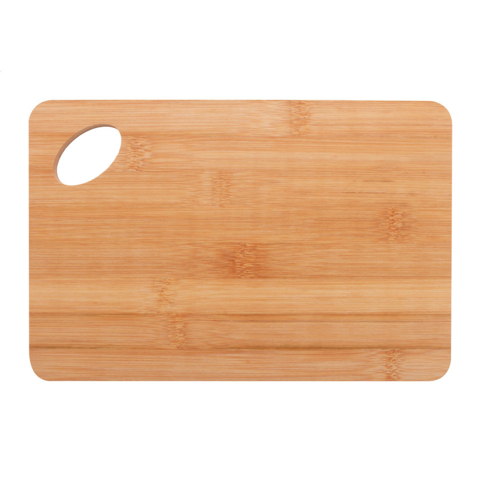 Bamboe snijplank met een uitgesneden gat, perfect voor het bereiden en serveren van diverse gerechten in de keuken.