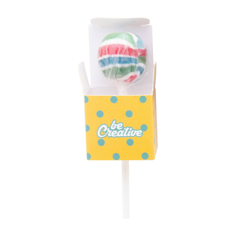 CreaLick white custom lollipop is een heerlijke multi-fruit lolly (8 g) verpakt in een volledig gepersonaliseerde papieren doos met full-colour bedrukking. Perfect voor promotionele doeleinden en merkversterking bij diverse gelegenheden.