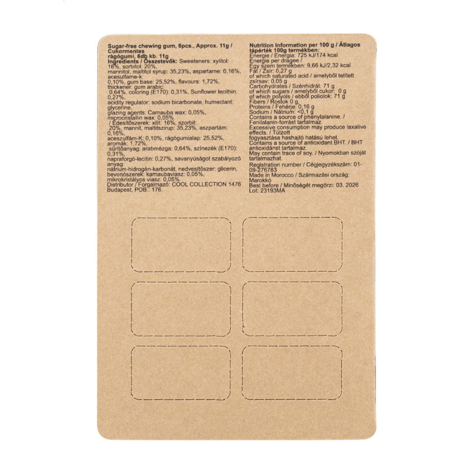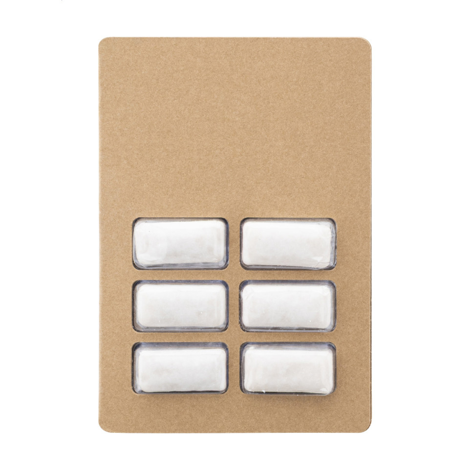 CreaChew Deluxe Eco is een suikervrije kauwgom, geleverd per 6 stuks in een blister en verpakt in een geperforeerde kraftpapierverpakking met full colour bedrukking. Ideaal voor milieubewuste marketingcampagnes en als promotioneel geschenk.