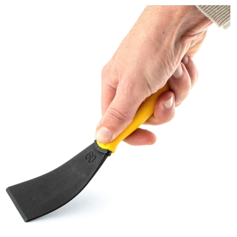 Plaats het flexibele, afgeschuinde blad onder de te verwijderen laag en oefen gelijkmatige druk uit. Het zachte handvat vermindert vermoeidheid tijdens langdurig gebruik en voorkomt beschadiging van gevoelige ondergronden.