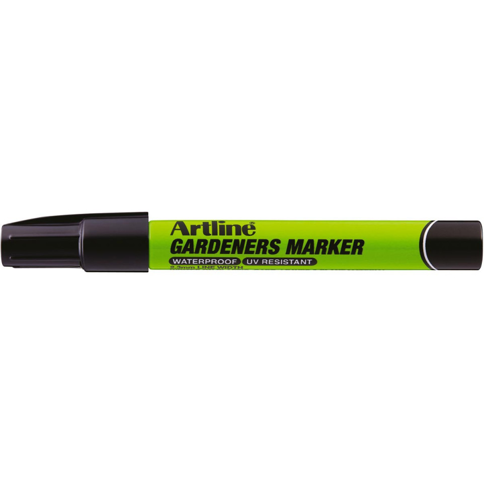 De Artline marker Gardeners zwart is een speciale merkstift met ronde punt en een schrijfbreedte van 2,3 mm, ontworpen voor nauwkeurig en duurzaam markeren in de tuin of op plastic labels.