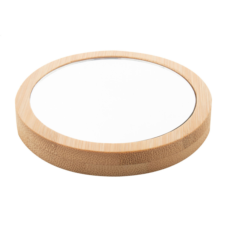 Ronde zakvormige spiegel gemaakt van natuurlijk bamboe, perfect voor dagelijks gebruik onderweg. Deze compacte spiegel past gemakkelijk in elke tas of zak en biedt een praktische oplossing voor snelle make-up checks.