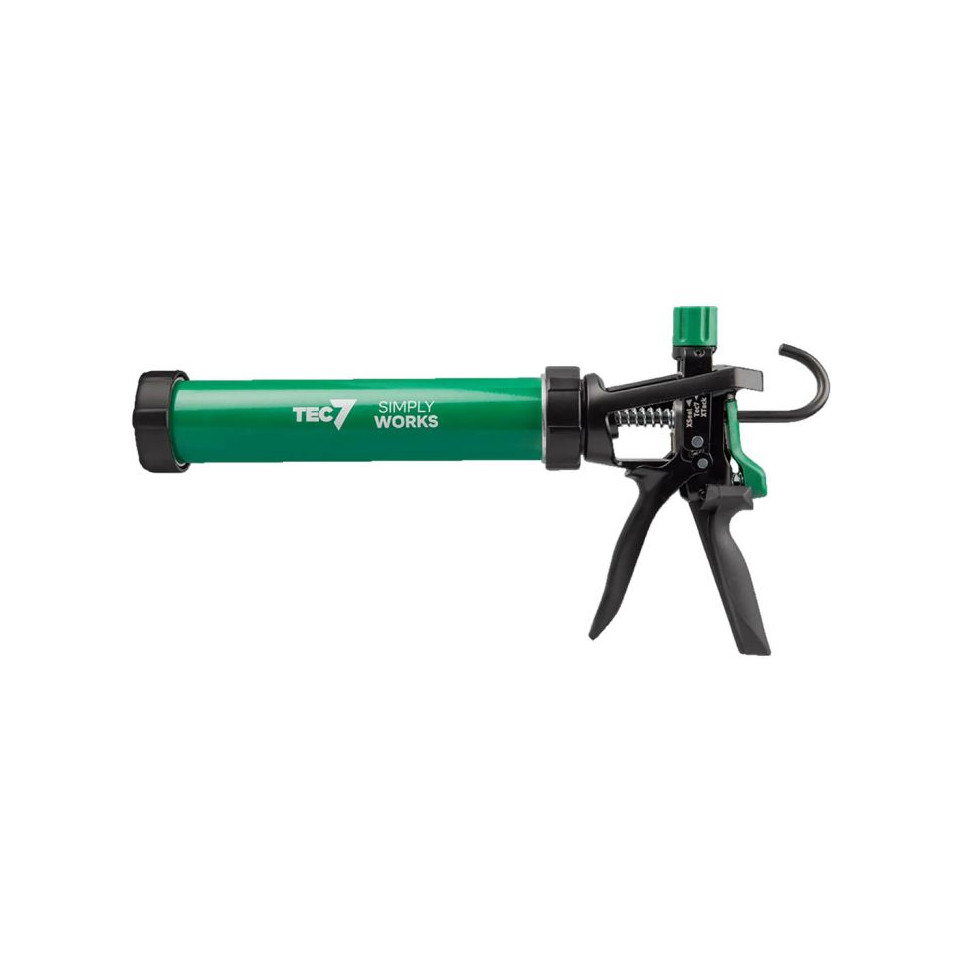 De Pistool Multigun Tec7 is een spuitpistool met traploze vermogensaanpassing van 12/1 tot 25/1, ontworpen voor het nauwkeurig en krachtig aanbrengen van zowel lichte afdichtmiddelen als zware lijmen in standaardpatronen. Dit gereedschap is ideaal voor professioneel gebruik bij kit- en lijmtoepassingen.