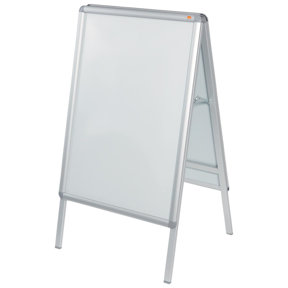De Nobo stoepbord is een vrijstaand, dubbelzijdig reclamebord op A1-formaat, geschikt voor gebruik zowel binnen als buiten. Ideaal voor winkels, horecagelegenheden en evenementen om snel wisselende informatie en promoties zichtbaar te maken.