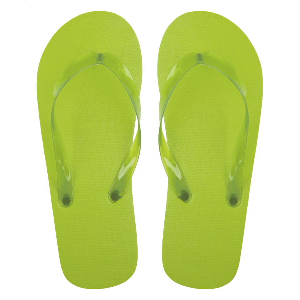Boracay kiwi groene strandslipper, unisex ontwerp met transparante PVC-bandjes in bijpassende kleur. Ideaal voor zomers strandplezier, gemaakt van duurzaam PE materiaal, beschikbaar in maat 42-44.