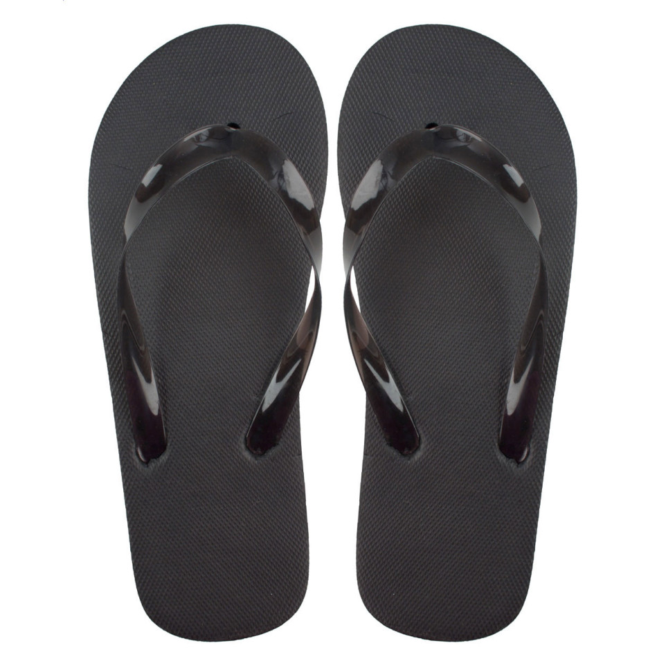 Boracay zwarte strandslippers, ontworpen voor optimaal comfort tijdens warme zomerdagen. Deze unisex slippers met transparante PVC bandjes zijn perfect voor strand, zwembad of casual gebruik.