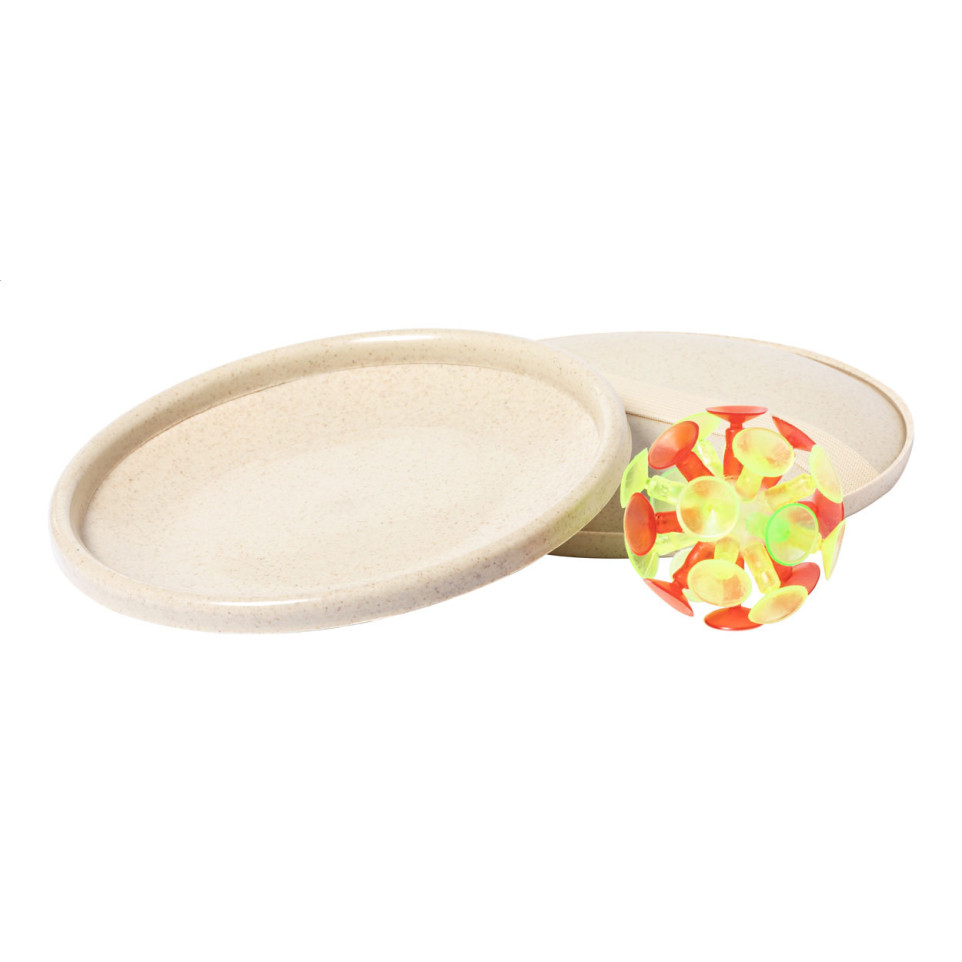 Strandspel bestaande uit zuignapballen en platte disc-peddels, vervaardigd uit tarwestro plastic met elastische band. Ideaal voor ontspannen sportactiviteiten op het strand, in het park of tijdens zomerse evenementen.