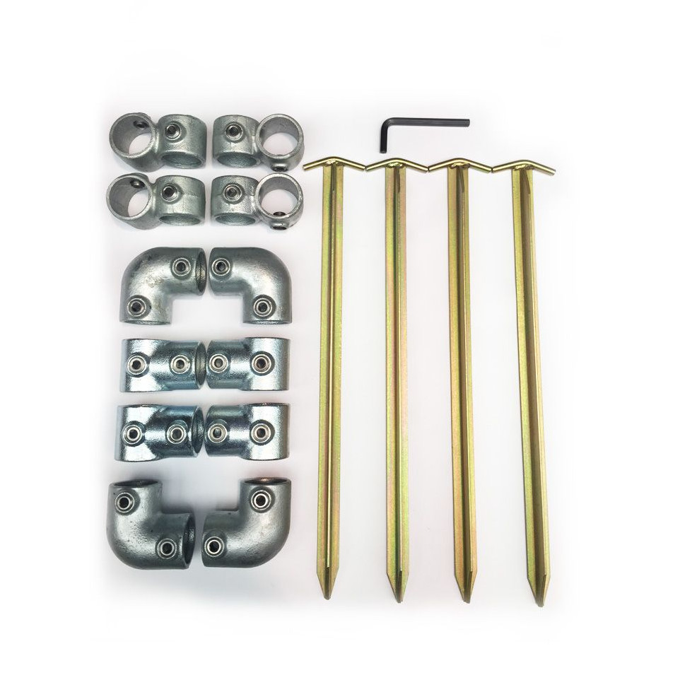 - De constructie wordt verankerd in de grond met 4 haringen van 50cm haringen (inbegrepen)