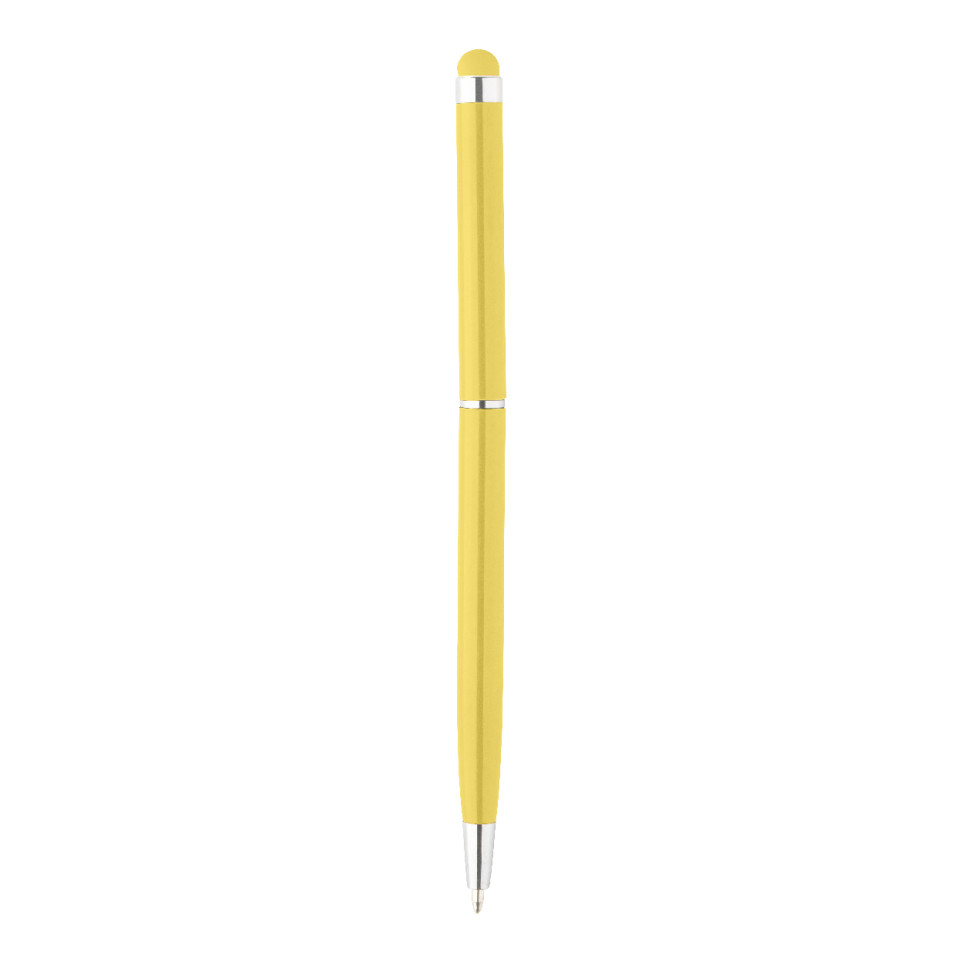 Aluminium balpen met gele kleur en geïntegreerde touchscreen tip. Geschikt voor zowel traditioneel schrijven als het bedienen van alle gangbare touchscreen apparaten. Ideaal voor dagelijks gebruik op kantoor, onderweg of thuis.