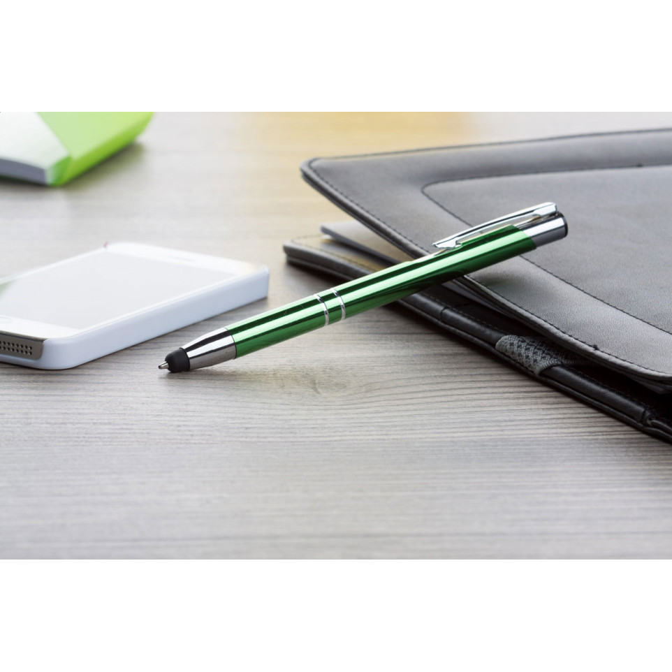 De Tunnel green touch balpen is een stijlvolle aluminium pen met geïntegreerde touchpunt, ideaal voor zowel schrijven op papier als voor gebruik op touchscreens. Perfect voor dagelijks gebruik op kantoor, thuis of onderweg.