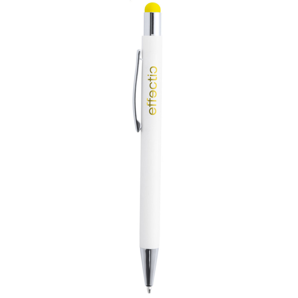 Aluminium touchscreen en balpen Wirly met speciale coating voor gekleurde gravures. Deze dual-function pen biedt zowel schrijfcomfort als touchscreen functionaliteit, ideaal voor dagelijks professioneel gebruik.