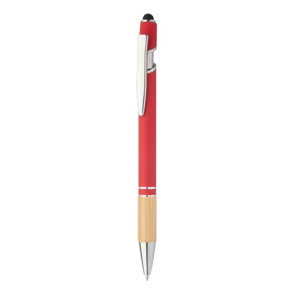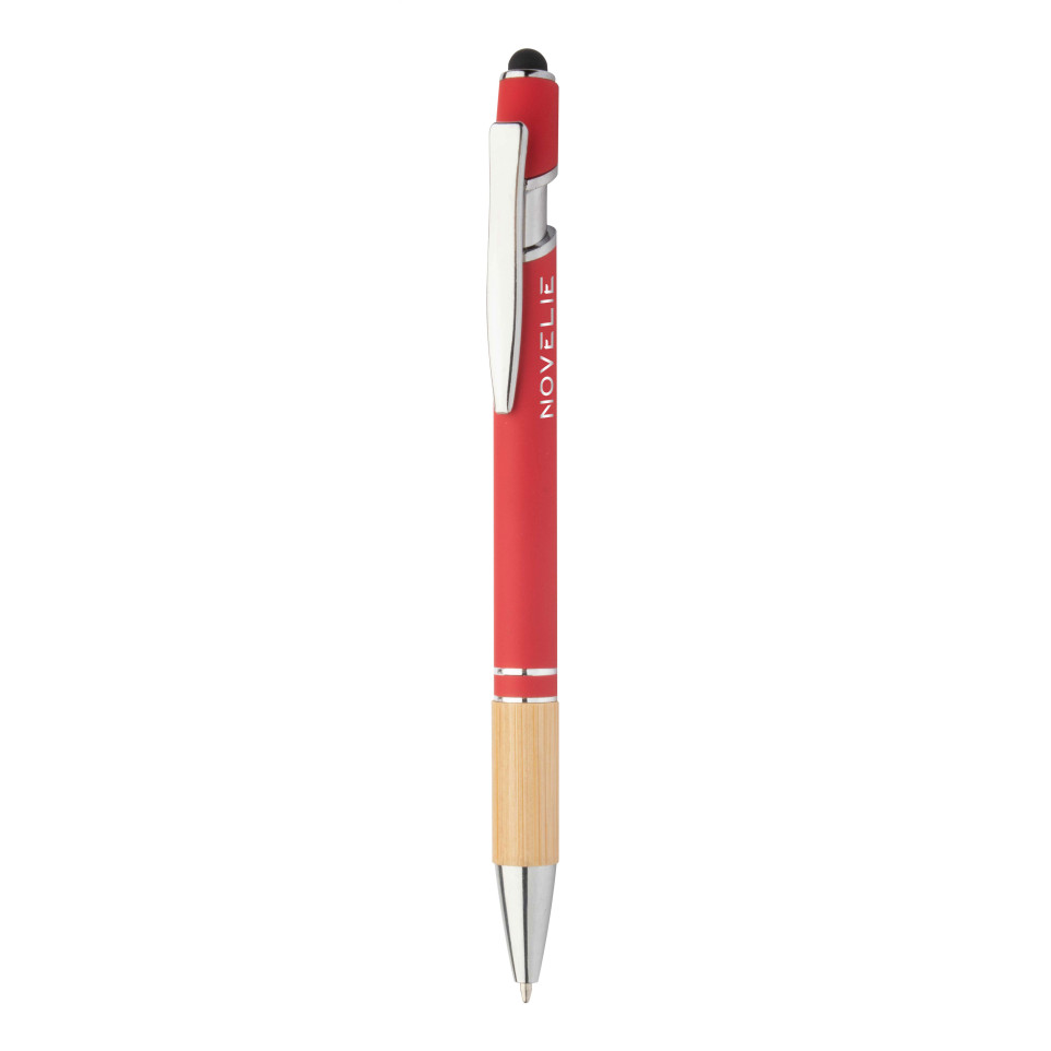 De Bonnel Red Touch balpen is een aluminium balpen en stylus in één, met handige push-mechaniek. Voorzien van een bamboe grip en een rubberized afwerking. Ideaal voor zowel schrijven op papier als bedienen van touchscreens tijdens vergaderingen, werk of onderweg.