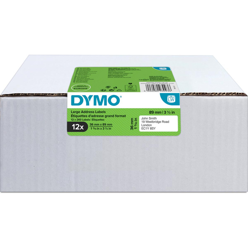 De Dymo Value Pack bevat 12 rollen grote adresetiketten voor Dymo LabelWriter-printers. De etiketten (89 x 36 mm, wit) zijn geschikt voor professionele adressering, archivering of etikettering van items in kantoor- en logistieke omgevingen.
