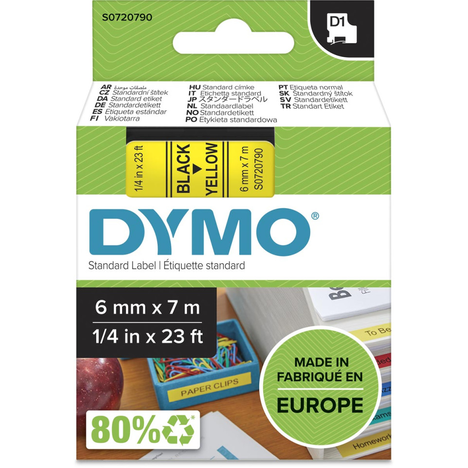 De Dymo D1 tape 6 mm, zwart op geel, is een handig product voor het labelen van pakketten, documenten en andere items. Het is geschikt voor dagelijkse gebruik in kantoren, winkels en thuis.