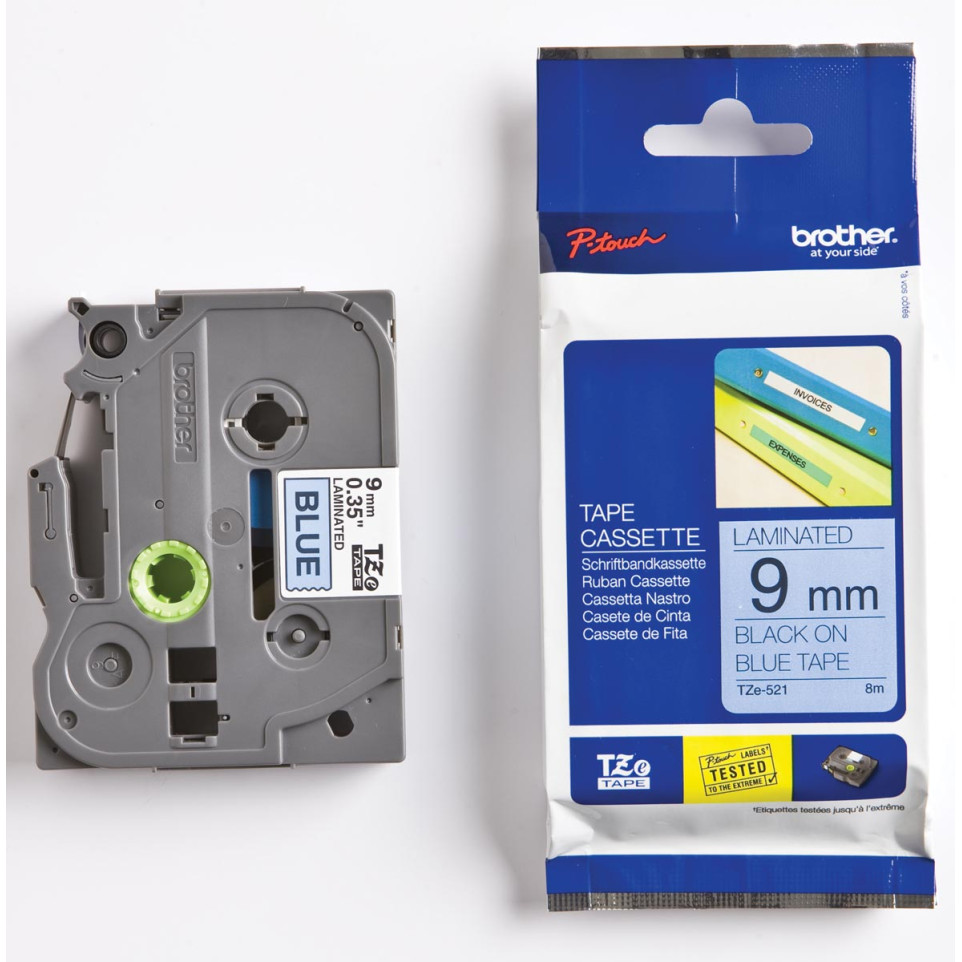 De Brother TZe tape voor P-Touch is ideaal voor het duurzaam en duidelijk labelen van mappen, kabels, gereedschappen en kantoorartikelen. Deze 9 mm brede tape met zwarte tekens op een blauwe achtergrond is geschikt voor zowel thuis als professioneel gebruik.