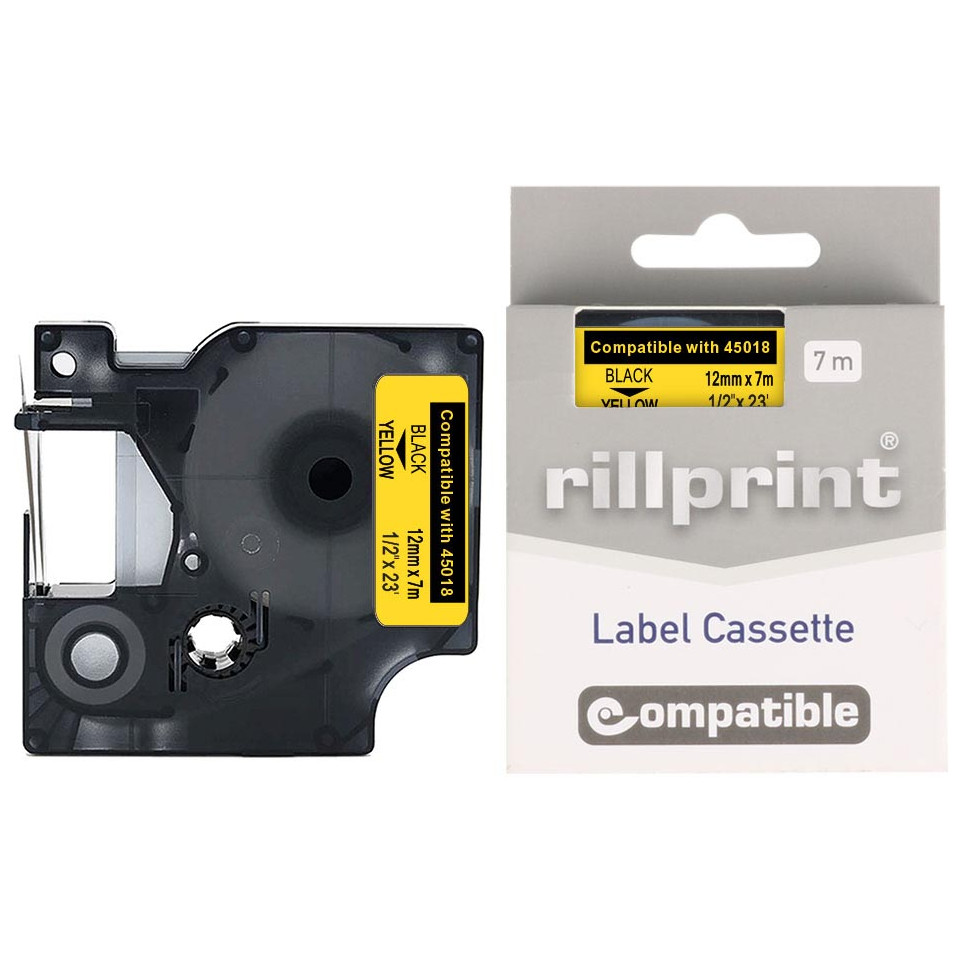 De Rillprint compatible D1 tape is geschikt voor gebruik met de Dymo 45018 labelprinter. Deze tape kan worden gebruikt voor het labelen van artikelen, pakketten en andere voorwerpen in een industriële of commerciële omgeving.