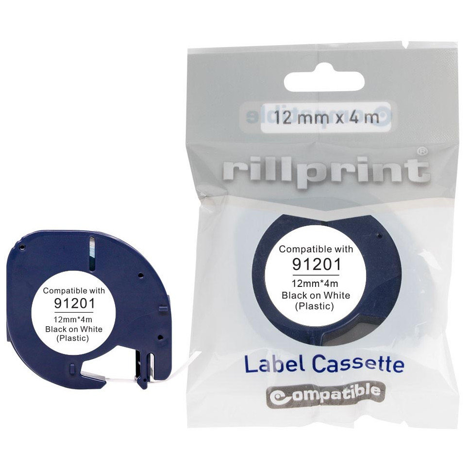 Rillprint compatible LetraTAG tape voor Dymo 91200, 12 mm, papier, wit
