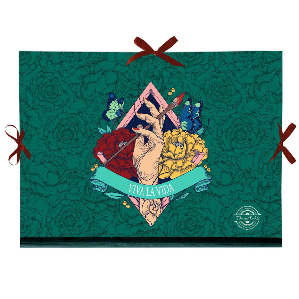 Frida Kahlo, tekenmap 28x38 cm, sluiting met 3 linten Ik schilder bloemen zodat ze niet verdwijnen. Frida Kahlo (1907 - 1954) Duik in de levendige en inspirerende wereld van Frida Kahlo met onze collectie die deze iconische artieste eert. Passioneel, creatief, tijdloos en uniek Frida is een legendarische figuur in de kunst en vrijheid van expressie. Deze collectie viert haar kracht, veerkracht en de schoonheid van haar werk, waarbij elke creatie de gedurfde geest en eindeloze creativiteit van de Mexicaanse artieste weerspiegelt. De designs, met kleurrijke bloemenmotieven, stralen de energie en passie van Frida Kahlo uit, en brengen de weelderige natuur tot leven die haar omringde en haar verbeelding voedde. Het is een uitnodiging om je ideeën, dromen en inspiratie vast te leggen op stukken die nooit zullen verwelken ter ere van een artieste wiens ziel de wereld blijft fascineren en inspireren. Ontdek de bureauwereld van Frida Kahlo, producten ontworpen om je moeiteloos en stijlvol door elk moment van je dagelijks leven te leiden. Doordachte accessoires die functionaliteit en flair combineren, om je werkplek op te fleuren en je organisatie een stuk eenvoudiger te maken. 1 motief. PEFC-gecertificeerd karton met satijncoating.