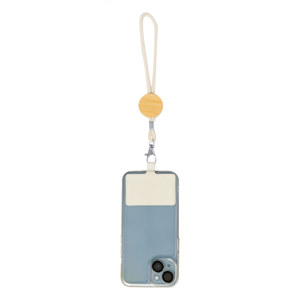 De Cohol Wrist natuurlijke mobiele houderarmband is een comfortabele polsband van katoen, voorzien van een ronde bamboe tag, telefooninzet en metalen karabijnhaak. Ideaal voor dagelijks gebruik, onderweg of tijdens evenementen.