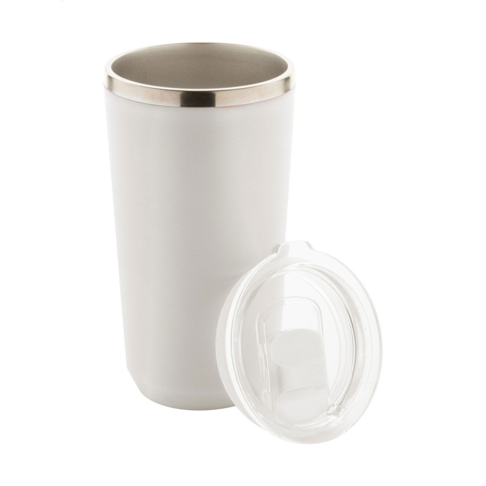 De Lungogo witte thermobeker is een stijlvolle dubbelwandige drinkbeker van 500 ml, perfect voor het warm houden van koffie of thee tijdens het woon-werkverkeer, op kantoor of onderweg.