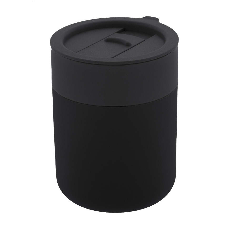 De Liberica zwarte travel cup is een stijlvolle, met siliconen omhulde keramische beker met een handige PP kunststof drinkdeksel. Inhoud 300 ml – ideaal voor onderweg, op kantoor of tijdens uw dagelijkse activiteiten.