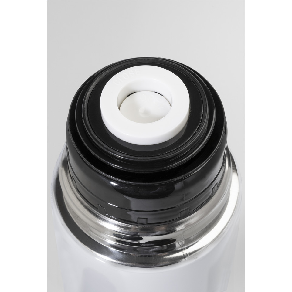 De Rebusta XL witte RSS thermosfles is een dubbelwandige vacuümkan van gerecycled roestvrij staal met 1000 ml inhoud. Ideaal voor dagelijks gebruik zoals onderweg, op kantoor of buitenshuis om dranken urenlang warm of koud te houden.
