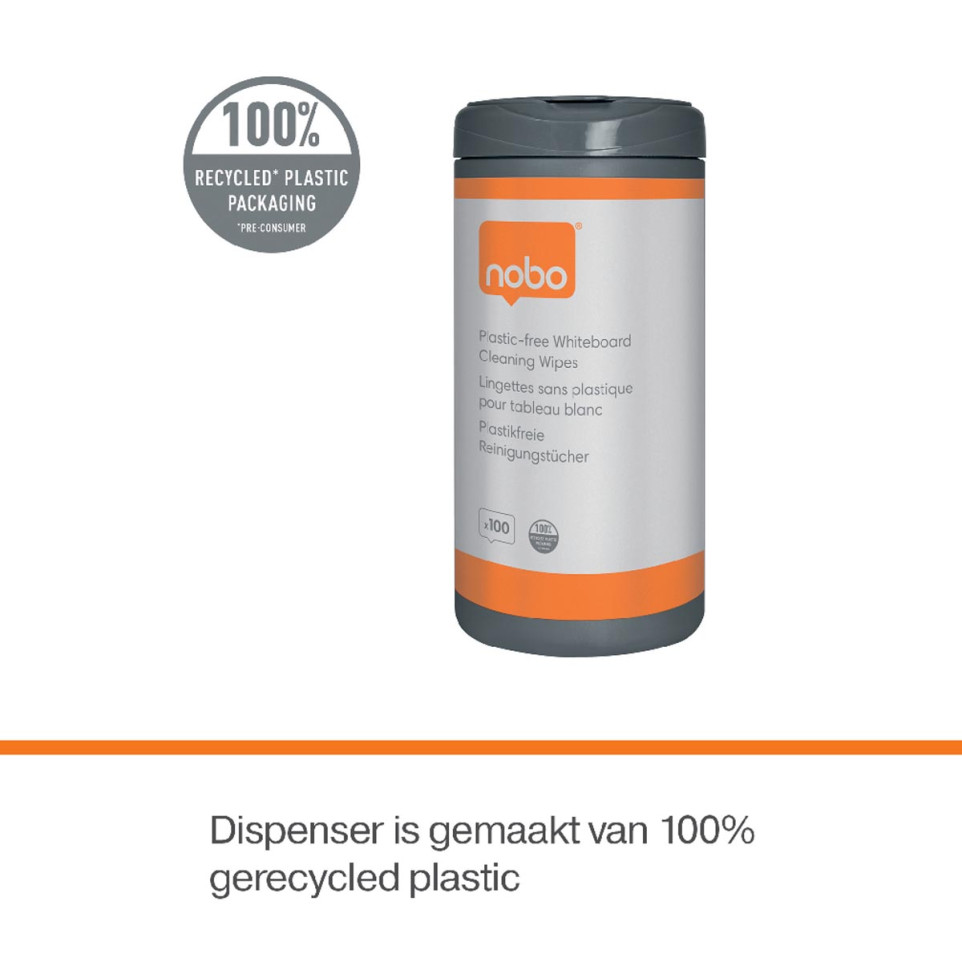 Voor optimaal resultaat wordt aangeraden de doekjes te combineren met een Nobo whiteboardwisser.