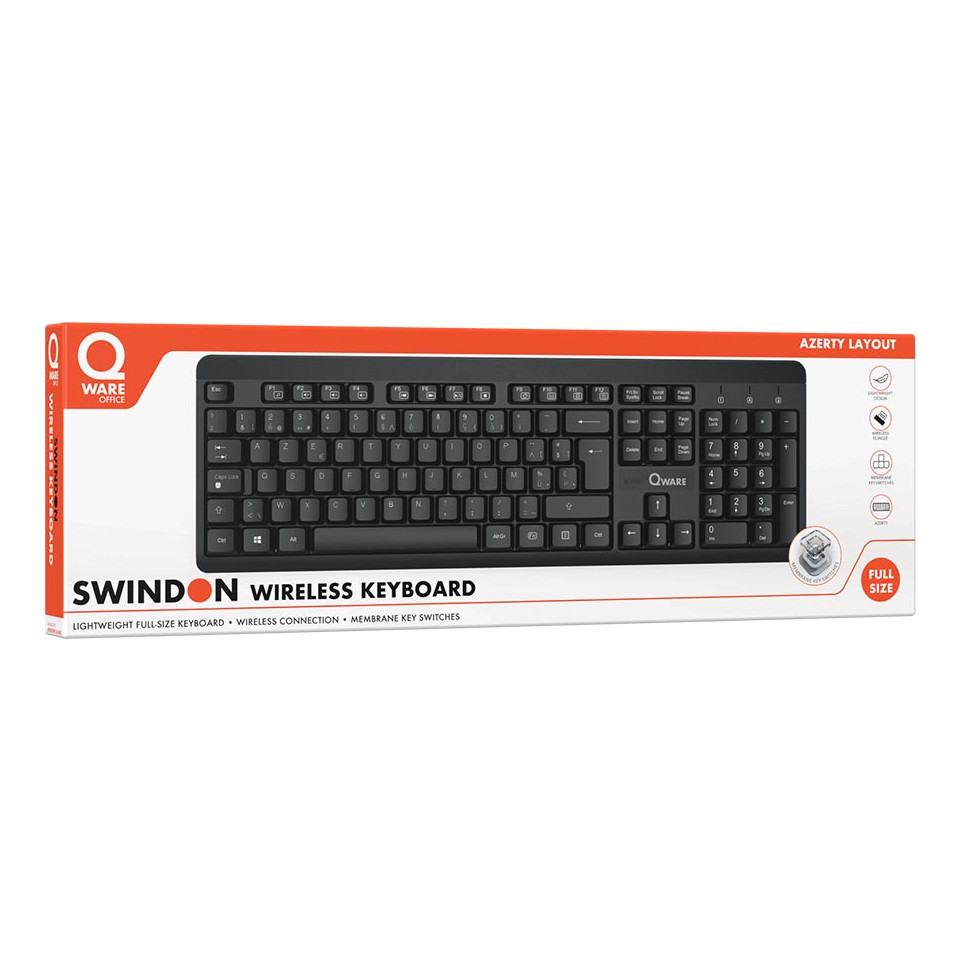 Het Qware draadloos toetsenbord Swindon is een full-size azerty-toetsenbord voor comfortabel typen, ideaal voor dagelijks gebruik op werkplekken of thuis. Dankzij het compacte design en de draadloze technologie heeft u optimaal bewegingsvrijheid tot 10 meter. De micro-USB-ontvanger is handig op te bergen in het toetsenbord.