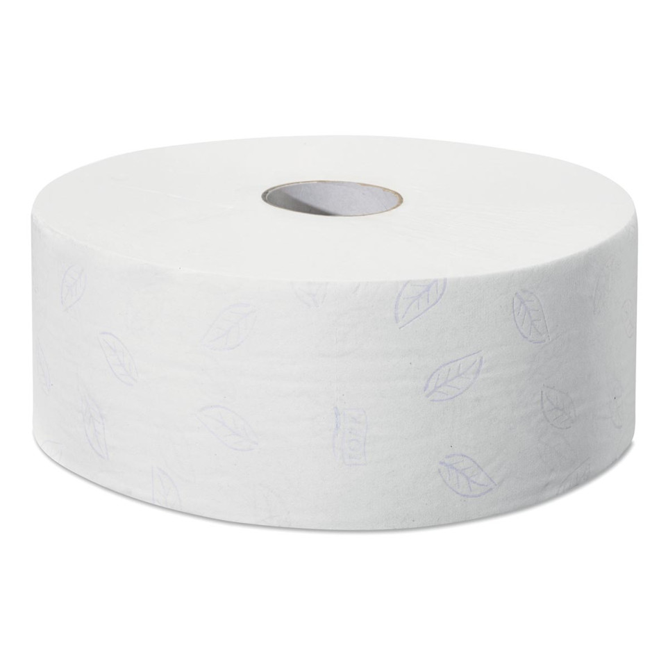 Tork toiletpapier Jumbo 2-laags, ontworpen voor het T1-systeem, biedt een efficiënte oplossing voor drukbezochte sanitaire ruimtes. Iedere verpakking bevat 6 witte rollen met een lengte van 360 meter per rol en een hoogte van 10 cm.