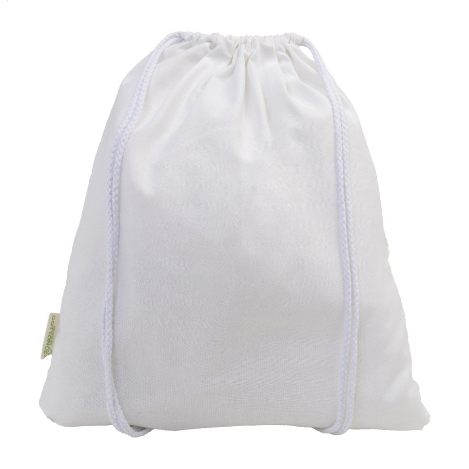 De Dropex wit trekkoordzak is een lichte, praktische tas gemaakt van 70% gerecycled katoen en 30% RPET polyester, 140 g/m². Ideaal voor dagelijks gebruik, evenementen, promoties of als milieubewuste relatiegeschenk.