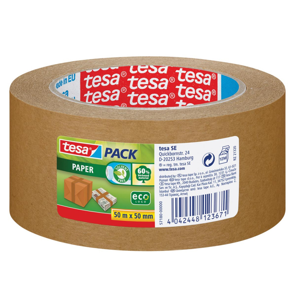 Tesa verpakkingsplakband Paper is ontworpen voor het sluiten van kartonnen dozen, pakketten en enveloppen bij het verpakken en verzenden van lichte tot middelzware goederen.