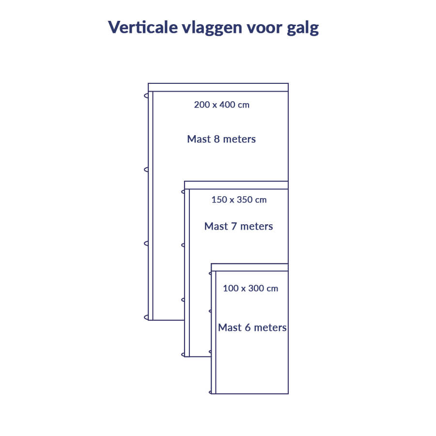 Wij raden het gebruik van dubbelzijdige vlaggen op 7 of 8 meter palen af.