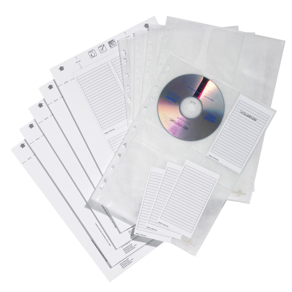 Plaats eenvoudig vier CD’s of DVD’s in de daarvoor bestemde pockets van de hoes. Gebruik de extra insteektassen voor het bijhouden van handleidingen, boekjes of aantekeningen bij elke schijf. De perforatie past in meerdere types ordners of ringbanden. Zo houdt u media en documentatie overzichtelijk samen opgeborgen.