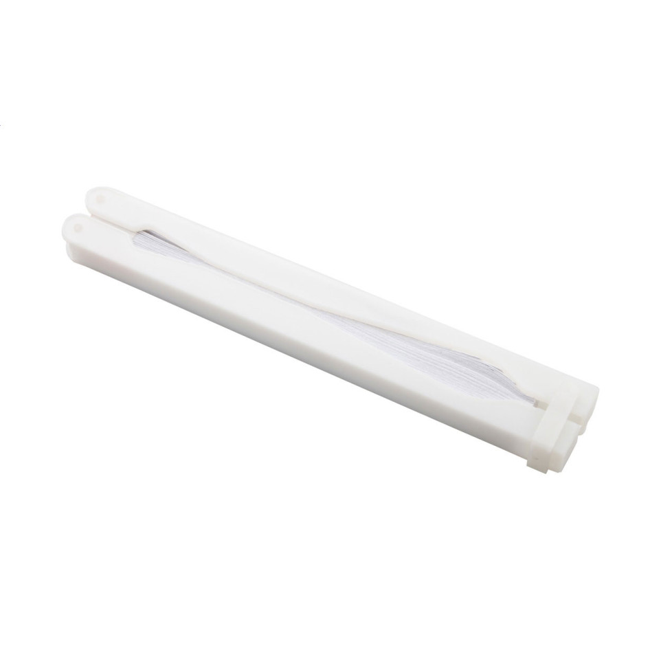 Praktische, lichtgewicht witte waaier van kunststof en papier, opvouwbaar voor eenvoudig meenemen tijdens warme dagen, strandbezoeken, evenementen of reizen.