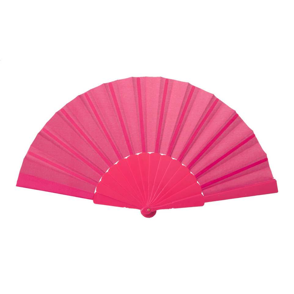 Handige opvouwbare waaier in levendige fuchsiakleur, uitgerust met een stevige plastic handgreep. Ideaal voor warme zomerdagen, festivals of buitenactiviteiten waar verkoeling wenselijk is.