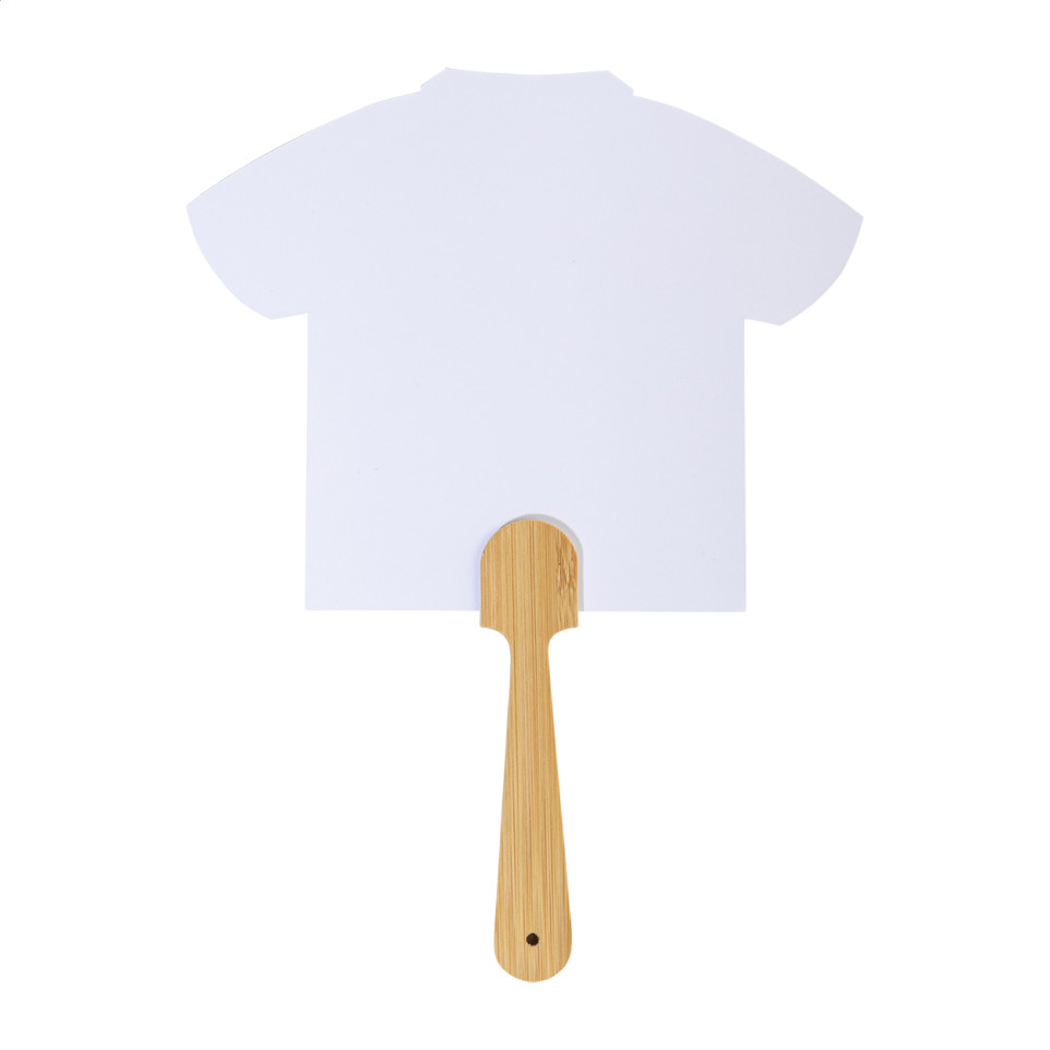 Digibreeze Boo wit is een custom made waaier met bamboe handvat en gelamineerd papier, digitaal bedrukt met eigen design aan beide zijden. Ideaal voor promotionele events waar verkoeling en zichtbaarheid samenkomen.