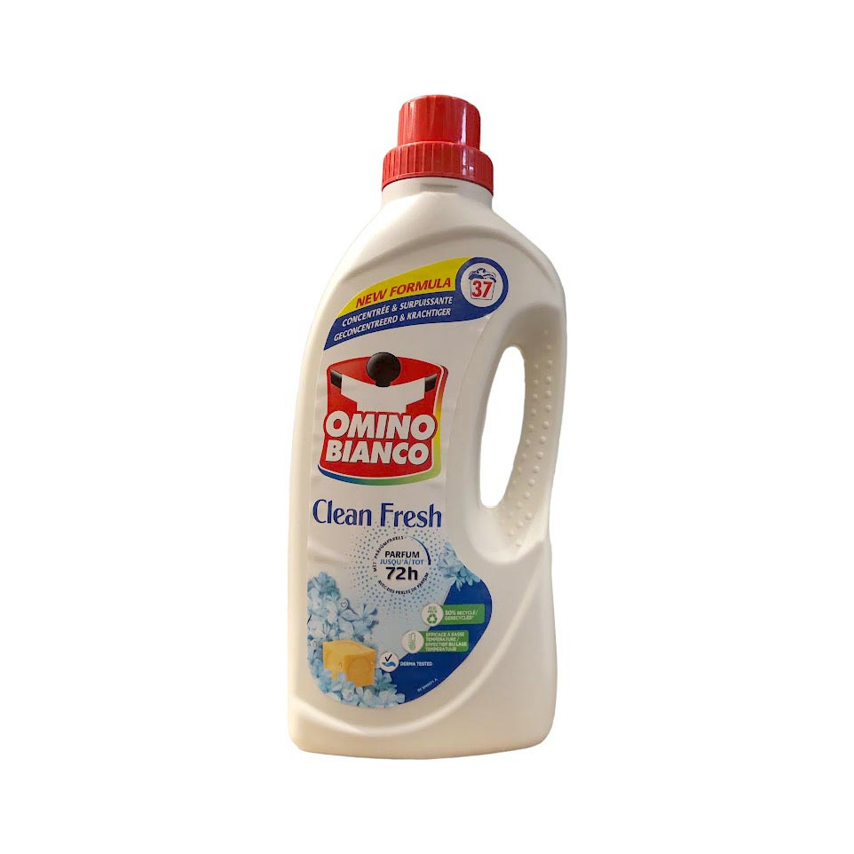 Omino Bianco Clean Fresh wasmiddel is een vloeibaar, geconcentreerd wasmiddel op basis van 100% natuurlijke zeep. Met 37 doseringen in een fles van 1,48 liter verwijdert het effectief vuil en geurtjes uit al je dagelijkse was.