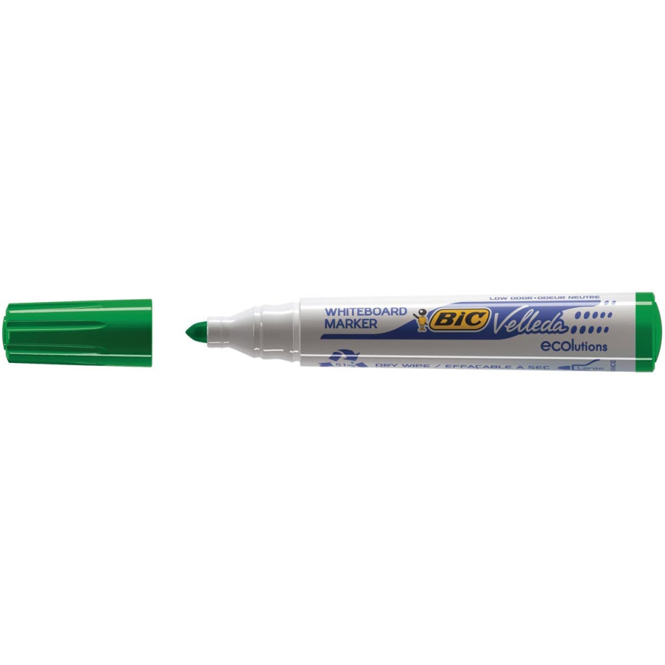De Bic Velleda 1701 whiteboardmarker groen is ideaal voor gebruik op whiteboards in kantoren, scholen en vergaderruimtes. De marker schrijft soepel, droogt snel en laat zich eenvoudig wissen, wat zorgt voor efficiënt en verzorgd schrijfwerk.