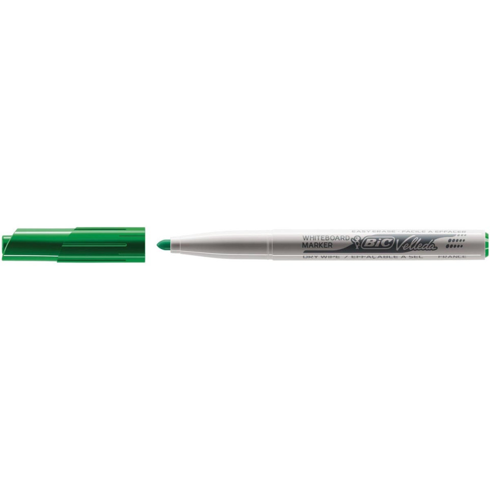 De Bic whiteboardmarker Velleda 1741 in groen is ontworpen voor helder, leesbaar schrijven op whiteboards. Ideaal voor gebruik op school, kantoor of thuis waar regelmatig notities of presentaties worden gemaakt.