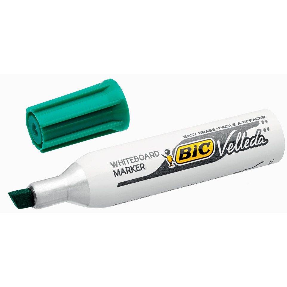 De Bic whiteboardmarker Velleda 1781 groen is een whiteboardstift met beitelvormige punt, ideaal voor gebruik op school, kantoor of thuis. Geschikt voor duidelijk en flexibel schrijven op elk type whiteboard.