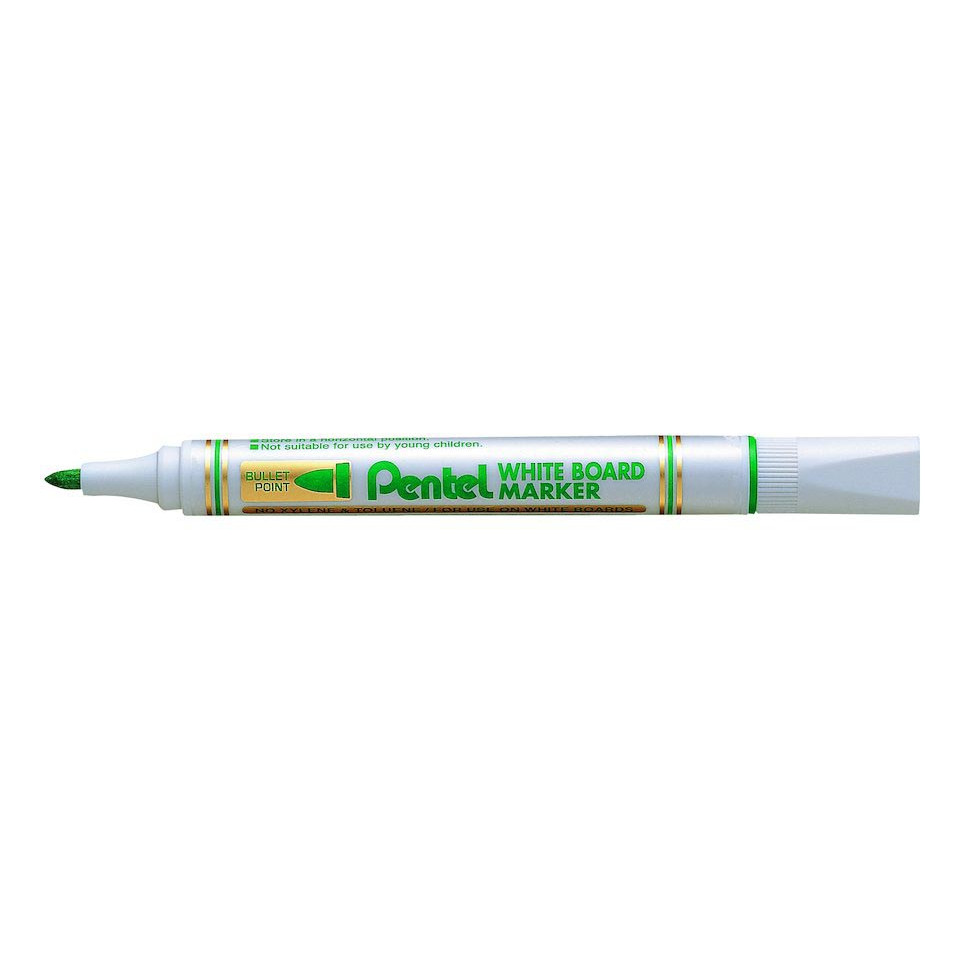 De Pentel whiteboardmarker MW85 met ronde punt en groene inkt is ontworpen voor dagelijkse toepassingen in klaslokalen, kantoren en thuis. Ideaal voor gebruik op whiteboards en porseleinen borden.