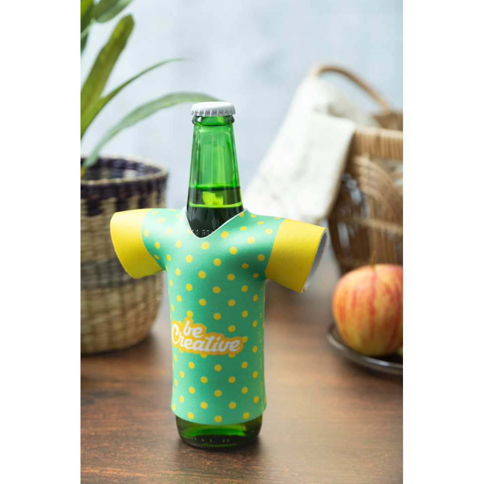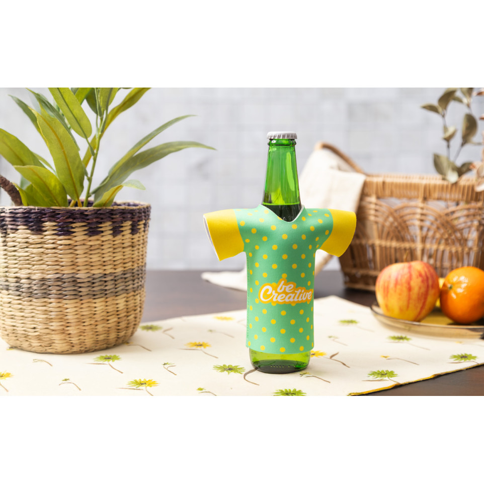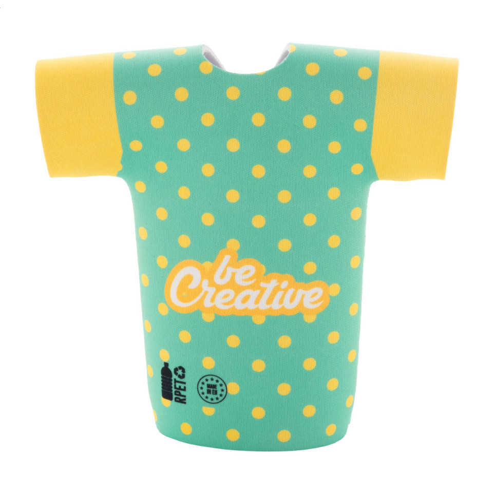 PrintBeer white RPET bierfleskoeler in T-shirtvorm houdt uw bier koel tijdens evenementen en buitenactiviteiten. Deze milieuvriendelijke koeler is perfect voor zomerse dagen, feesten en promotionele gelegenheden.